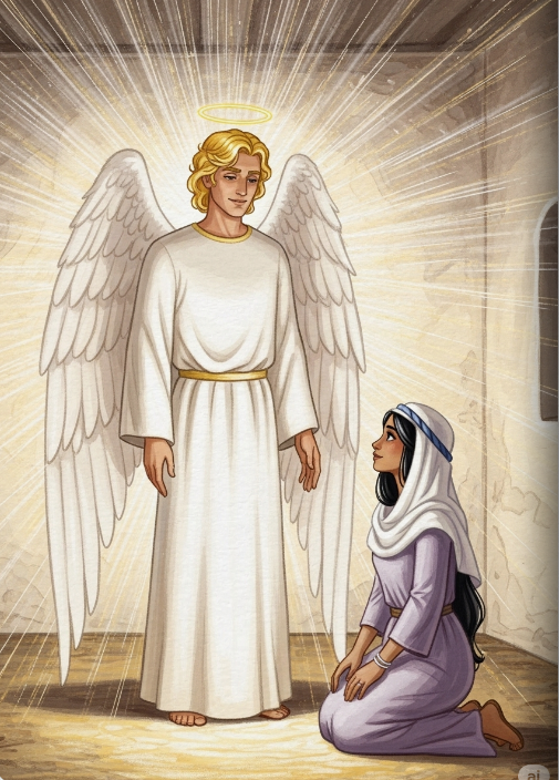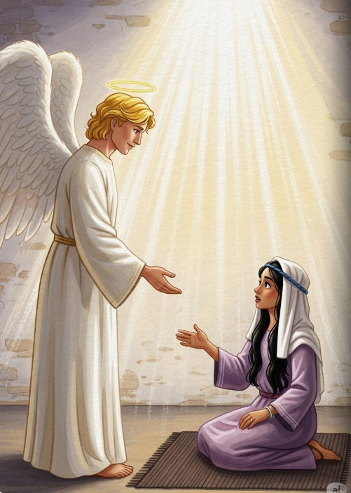 மரியாள் கலிலேயாவிலுள்ள நாசரேத்தென்னும் ஊரிலே வசித்து வந்த ஒரு கன்னிகை. இவள் யோசேப்பு என்கின்ற நாமமுள்ள புருஷனுக்கு நியமிக்கப்பட்டிருந்தாள். ஒரு நாள் அவள் இருந்த வீட்டில் தேவதூதனாகிய காபிரியேல் பிரவேசித்து: கிருபை பெற்றவளே வாழ்க ! கர்த்தர் உன்னுடனே இருக்கிறார். நீ தேவனிடத்தில் கிருபை பெற்றாய் என்றான்.