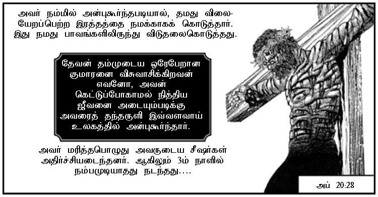 தேவன், தம்முடைய ஒரேபேறான குமாரனை விசுவாசிக்கிறவன் எவனோ அவன் கெட்டுப்போகாமல் நித்தியஜீவனை அடையும்படிக்கு, அவரைத் தந்தருளி, இவ்வளவாய் உலகத்தில் அன்புகூர்ந்தார். (யோ.3:16)