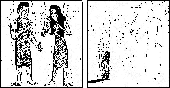 மனிதனோ அக்கட்டளையை மீறி தேவனிடமிருந்து பிரிவை ஏற்படுத்தி, பாவத்தையும் சாபத்தையும் தேடிக்கொண்டான். சுயகிரியையினாலோ சுயஞானத்தினாலோ தனது பாவத்தையும் சாபத்தையும் போக்கிக்கொள்ள முயன்றும் பலன் கிடைக்கவில்லை. காலம் முழுவதும் வேதனைப்பட்டு மரணத்தைத் தேடிக்கொண்டான். தேவனையோ மறந்துவிட்டான்.