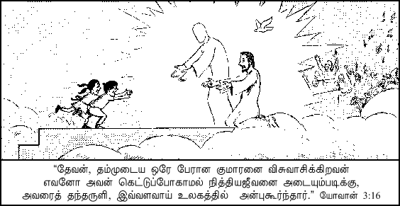 அன்பும் இரக்கமும் உள்ள தேவன் மனிதன் தன்னைவிட்டு தூரமாய்ப் போய் மரித்து அழிந்துவிடுவதை விரும்பவில்லை. இரக்கம்கொண்டு தனது ஒரேபேறான குமாரனான இயேசுவை எமக்குத் தந்து அவர்மூலம் மீட்பின் வழியை அமைத்தார். பாவத்திற்கு நாம் பெறும் கூலியான மரணத்தை பாவமறியாத அவர் சுமந்துகொண்டார். நாம் மரணத்தினின்று நீங்கி, ஜீவனைப் பெறுவதற்காக அவர் ஜீவனை விட்டு உயிர்த்தெழுந்தார். இன்றும் ஜீவனுள்ள தேவனாய் ஜீவிக்கும் இயேசு கிறிஸ்து தன்னை விசுவாசித்து மனந்திரும்பும் பாவி ஒவ்வொருவரையும் மீட்டு பரலோக பேரின்ப வாழ்வுதர வாஞ்சையோடு காத்திருக்கிறார். தேவனுடைய இந்த நற்செய்தியைக் கூறும் வேதவார்த்தைகளை படங்கள் மூலம் தெளிவு படுத்துவதாய் இது சித்தரிக்கப்பட்டுள்ளது. இந்த வசனங்கள் அனைத்தும் பரிசுத்த வேதாகமத்திலிருந்து எடுக்கப்பட்டது.
